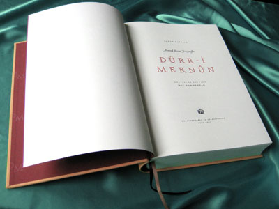 The doctoral thesis, which also includes a facsimile text with critical notes and a translation of Chapter 17, manifests the desirability of publishing the complete Dürr-i Meknûn. With the present edition Kaptein is fulfilling an academic commitment.